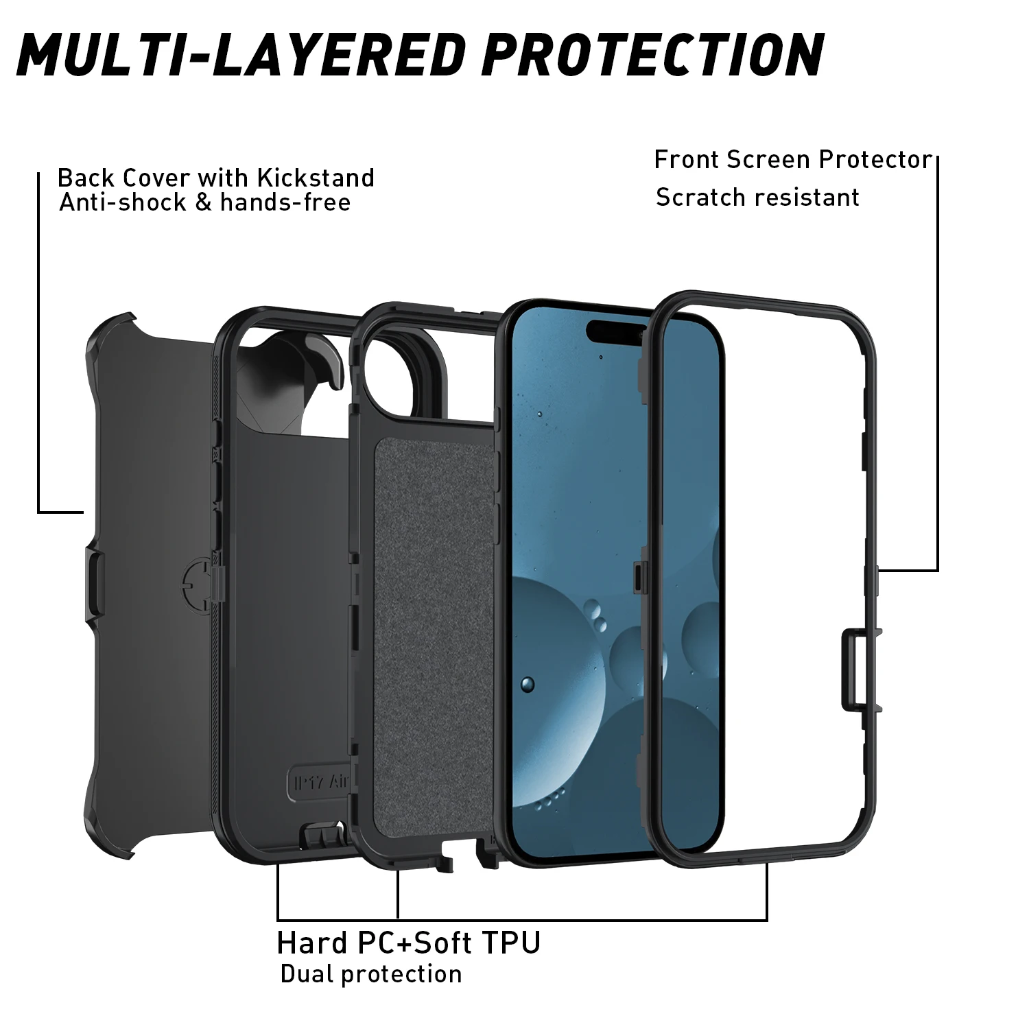 Magnetic 3-in-1 Defender Case for iPhone 17 Air — Shockproof, Dustproof, TPU+PC, Anti-Fall, Anti-Scratch with Holder
