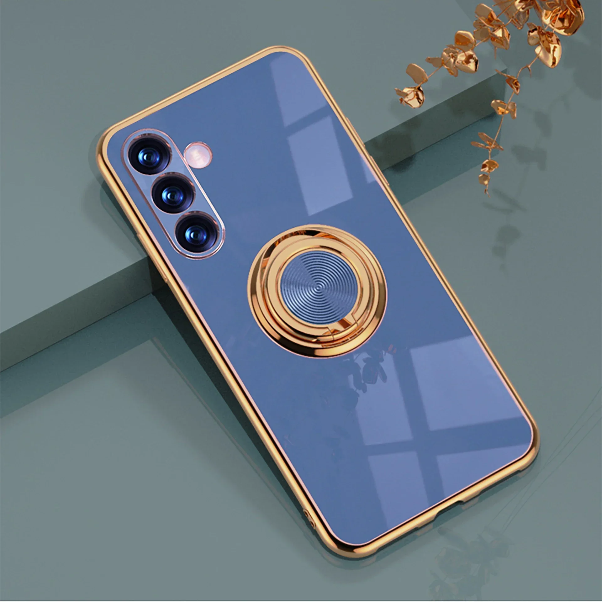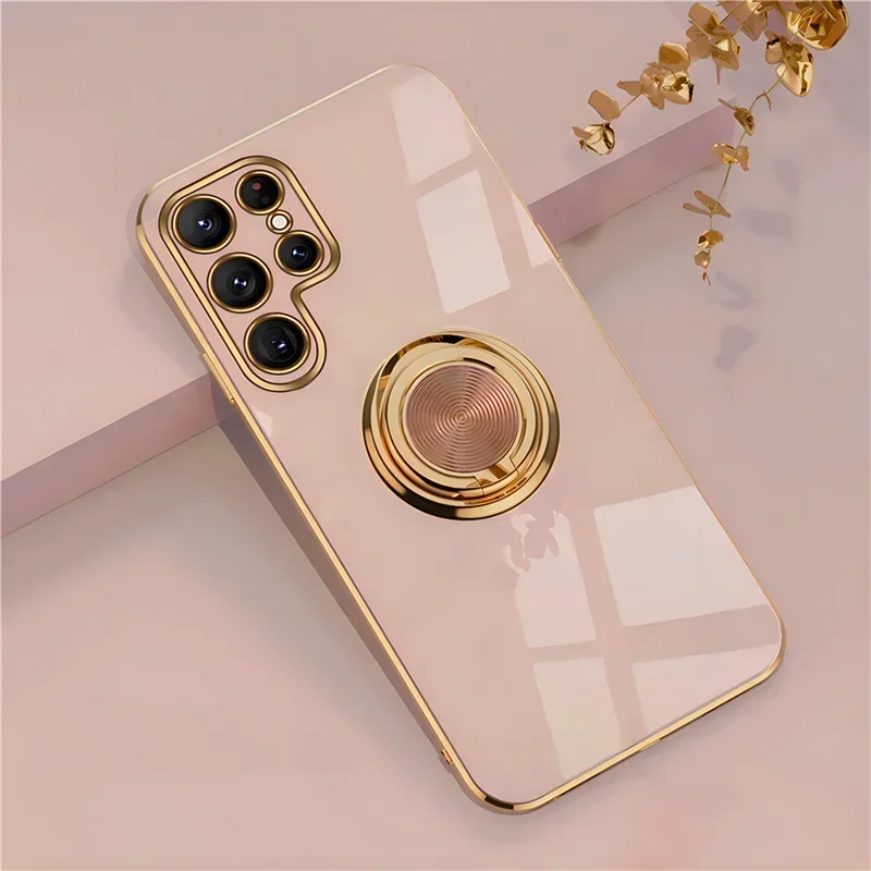Plated Ring Holder Protective Case for Samsung Galaxy S25 Edge / S24/S23/S22/S21/S20 FE / Note 20 Ultra (Shockproof)