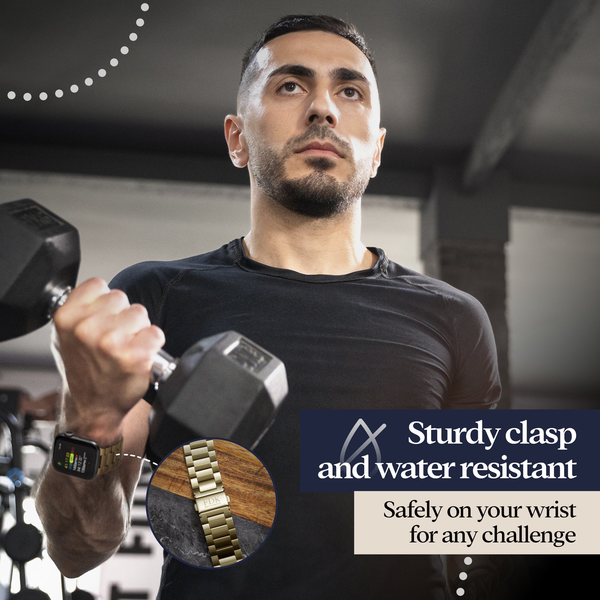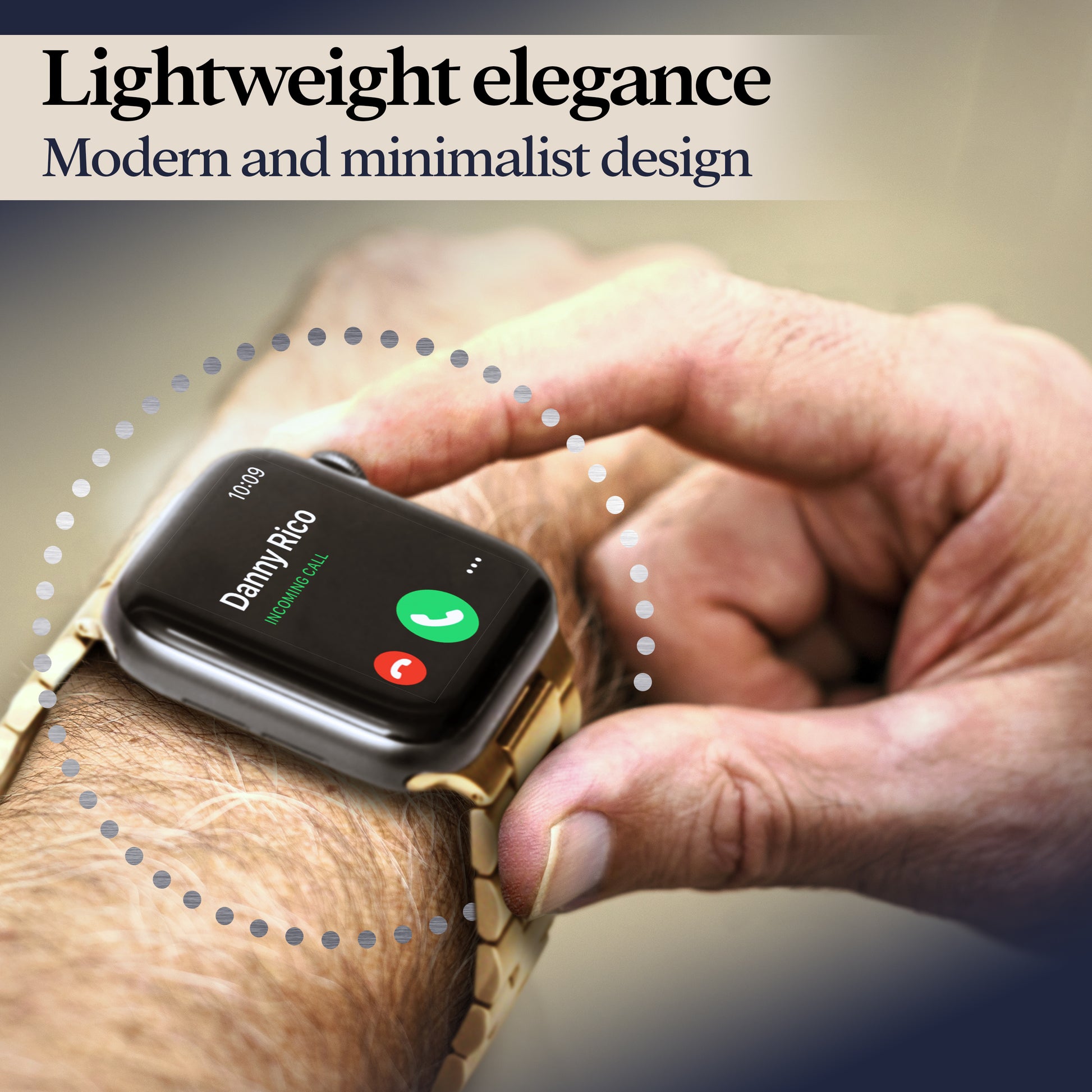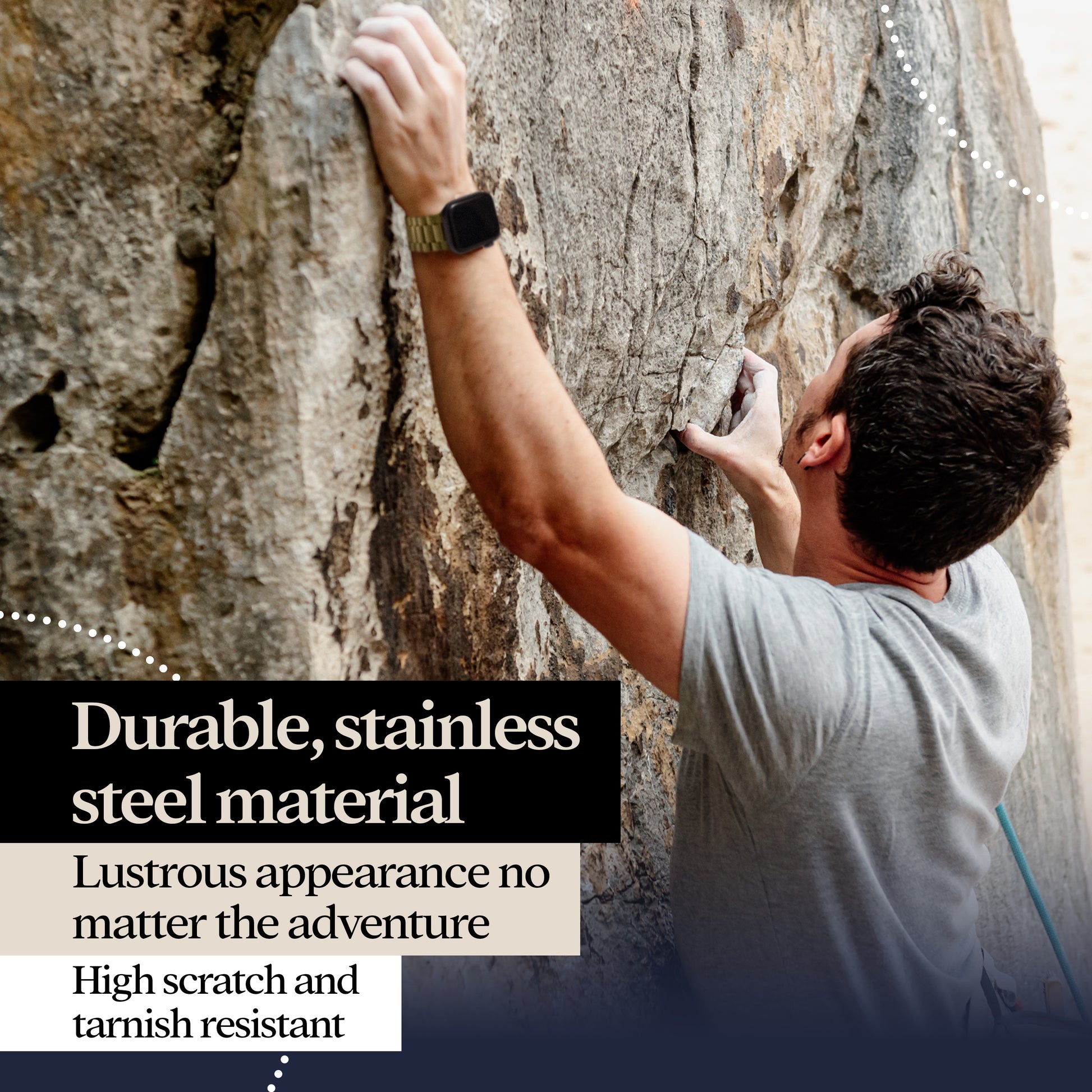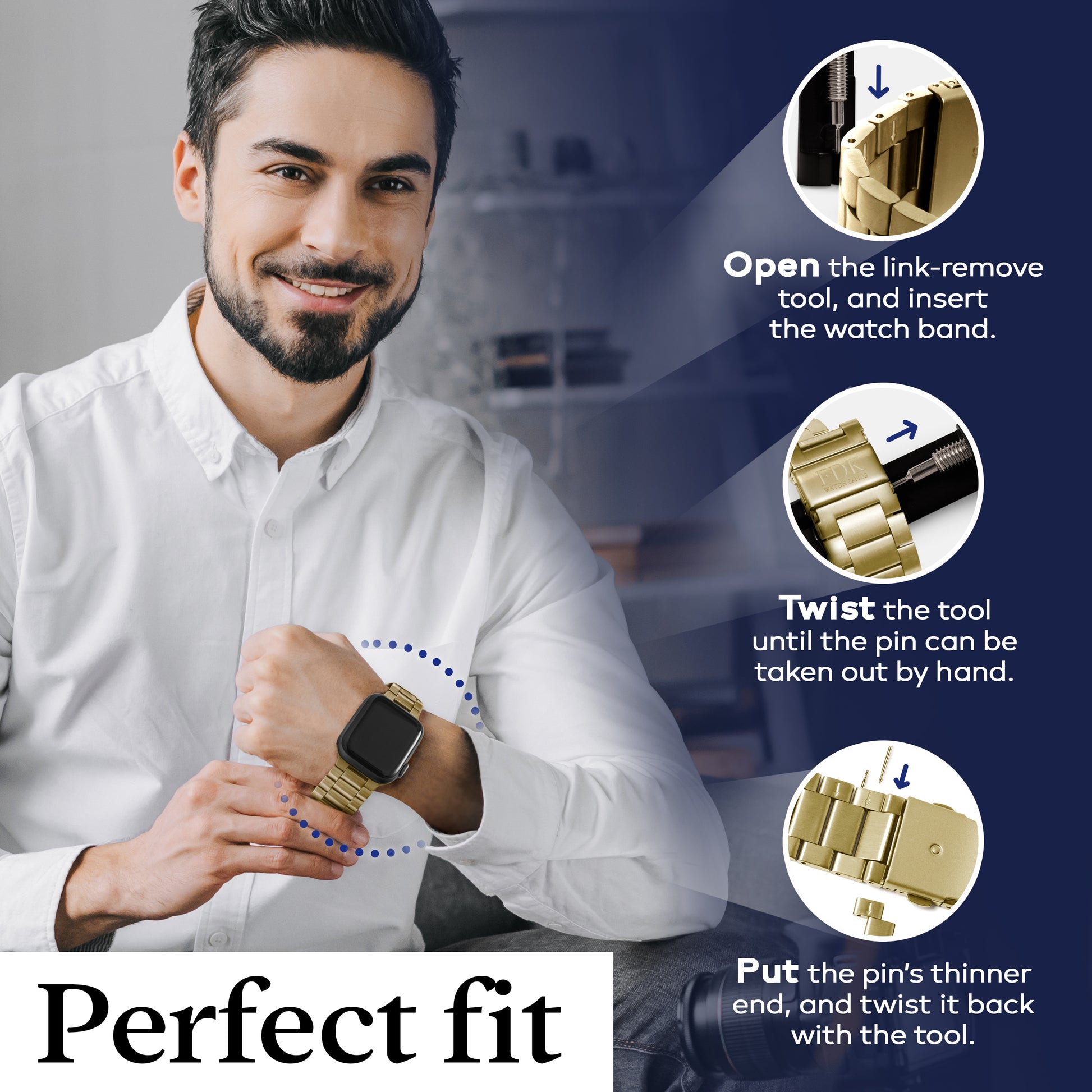 Elevate your Apple Watch with a durable, high-grade stainless steel band designed for both men and women. Built to withstand an active lifestyle, this robust strap combines timeless luxury with everyday practicality. Its sleek, modern aesthetic complements any outfit—from casual to formal—while the refined finish provides a sophisticated edge to your look. The adjustable links ensure a comfortable, secure fit that stays in place all day, and the easy installation allows you to swap bands quickly without tools. Compatible with all Apple Watch models, from Series 1 through Series 8, this band includes all necessary installation components for a hassle-free setup. Enjoy secure craftsmanship, versatile style, and a dependable connection that keeps pace with your adventures.