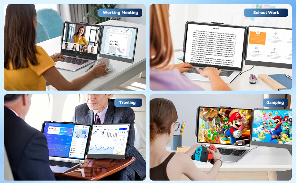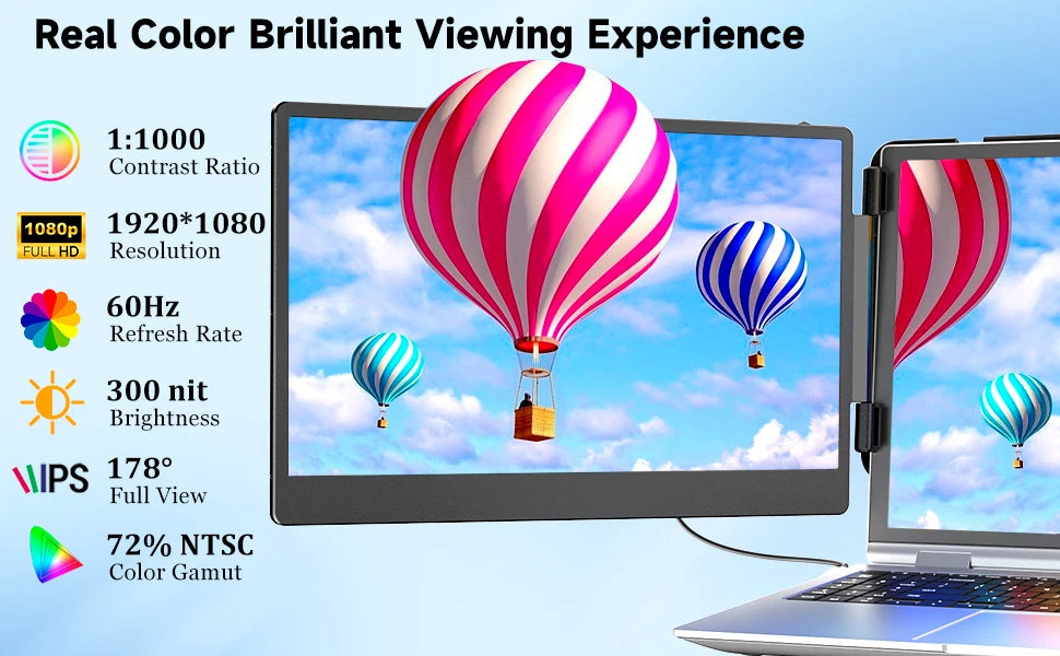 14" S1 Laptop Screen Extender – Dual 1080P FHD, 13"-17.3" Laptops, Plug & Play USB-C